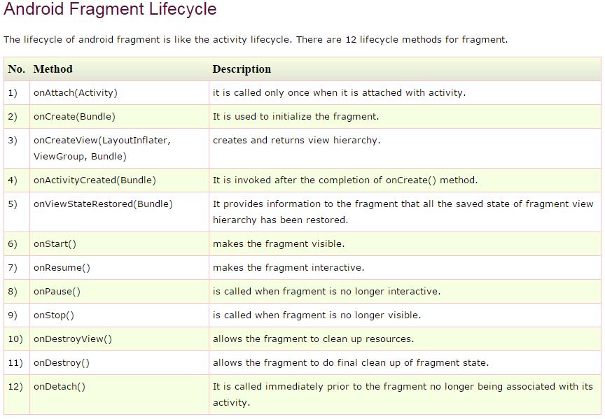 - Each fragment has its own life cycle methods that is affected by activity life cycle because fragments are embedded in activity.
