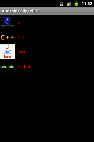 public String [] prgmNameList={"C","C++","Java","Android"};