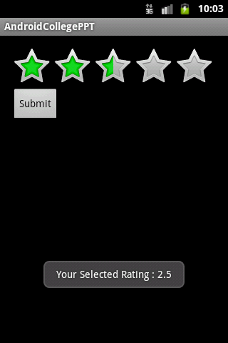 Toast.makeText(A_RatingBarDemo.this, "Your Selected Rating : "+rb_rating.getRating(), Toast.LENGTH_SHORT).show();