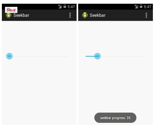 A SeekBar is an extension of ProgressBar that adds a draggable thumb. The user can touch the thumb and drag left or right to set the current progress level.